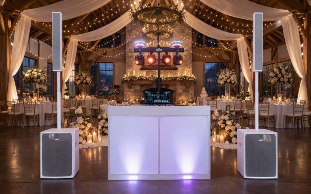 Professional-grade audio equipment calibrated to your venue, delivering crystal-clear sound from your reception through the final song